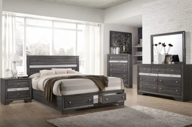 FULL: 57 X 78 X 50 QUEEN: 64 X 83 X 50 KING: 80 X 83 X 50 DRESSER: 63 X 17 X 39 CHEST: 34 X 17 X 52 NIGHTSTAND: 26 X 17 X 26 MIRROR: 37 X 1 X 47