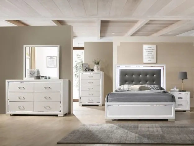 FULL: 61 X 78 X 65 QUEEN: 64 X 84 X 57 KING: 80 X 84 X 57 TWIN: 61 X 78 X 65 DRESSER:59 X 17 X 36 CHEST: 34 X 17 X 48 NIGHTSTAND: 24X 17 X 24 MIRROR: 39 X 1 X 35