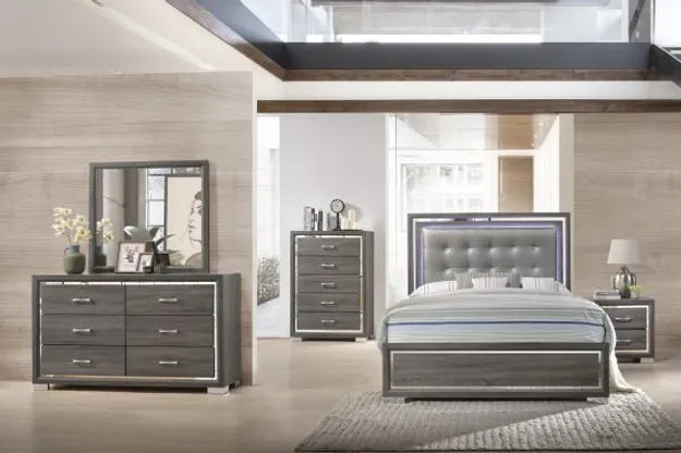 FULL: 61 X 78 X 65 QUEEN: 64 X 84 X 57 KING: 80 X 84 X 57 TWIN: 61 X 78 X 65 DRESSER:59 X 17 X 36 CHEST: 34 X 17 X 48 NIGHTSTAND: 24X 17 X 24 MIRROR: 39 X 1 X 35