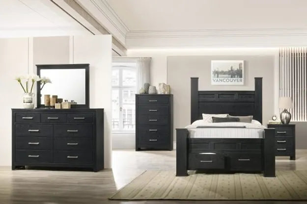 FULL: 58 X 90 X 56 QUEEN: 64 X 96 X 68 KING: 80 X 96 X 68 DRESSER: 61 X 16 X 43 CHEST: 35 X 16 X 54 NIGHTSTAND: 24 X 16 X 29 MIRROR: 42 X 2 X 32