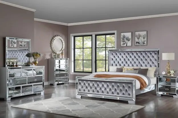 MIRRORED GREY VELVET BEDROOM