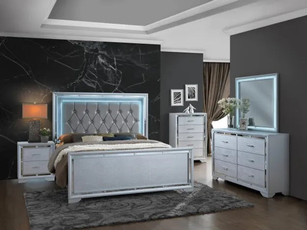 FULL: 57 X 80 X 66 QUEEN: 63 X 86 X 66 KING: 80 X 86 X 66 DRESSER:62 X 17 X 38 CHEST:34 X 17 X 48 NIGHTSTAND: 26 X 17 X 28 MIRROR: 44 X 2 X 48