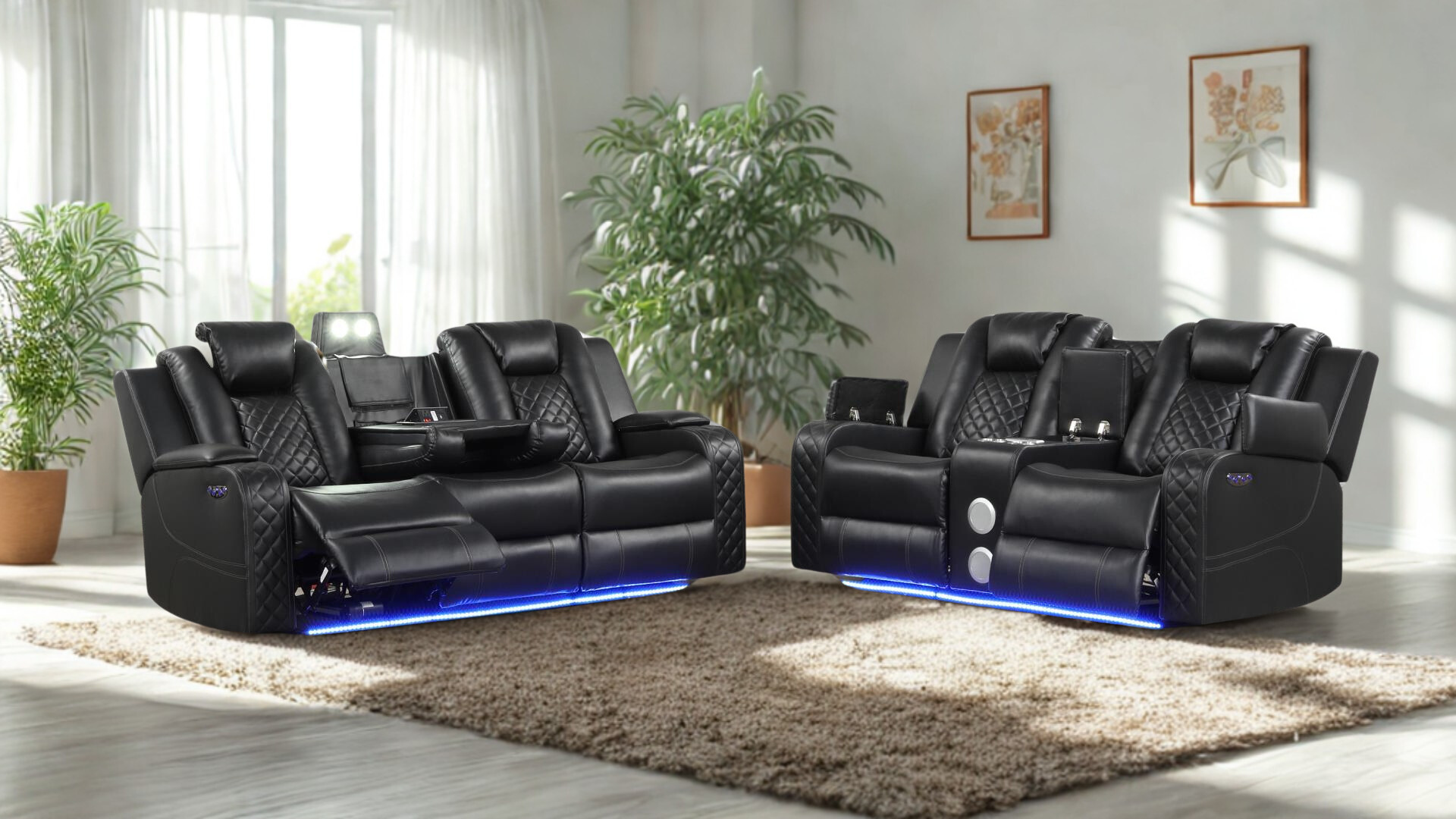 Liven up your living room with this fully loaded and ultra-contemporary 2 piece set. With a sports car-inspired design and faux leather covering, this set is sure to make a statement. Enjoy high-tech features like one-touch power control and an adjustable headrest while maintaining social distance and making your home your own little haven. Unique and fun, this living room set is proof that recliners have come a long way in terms of style and function.