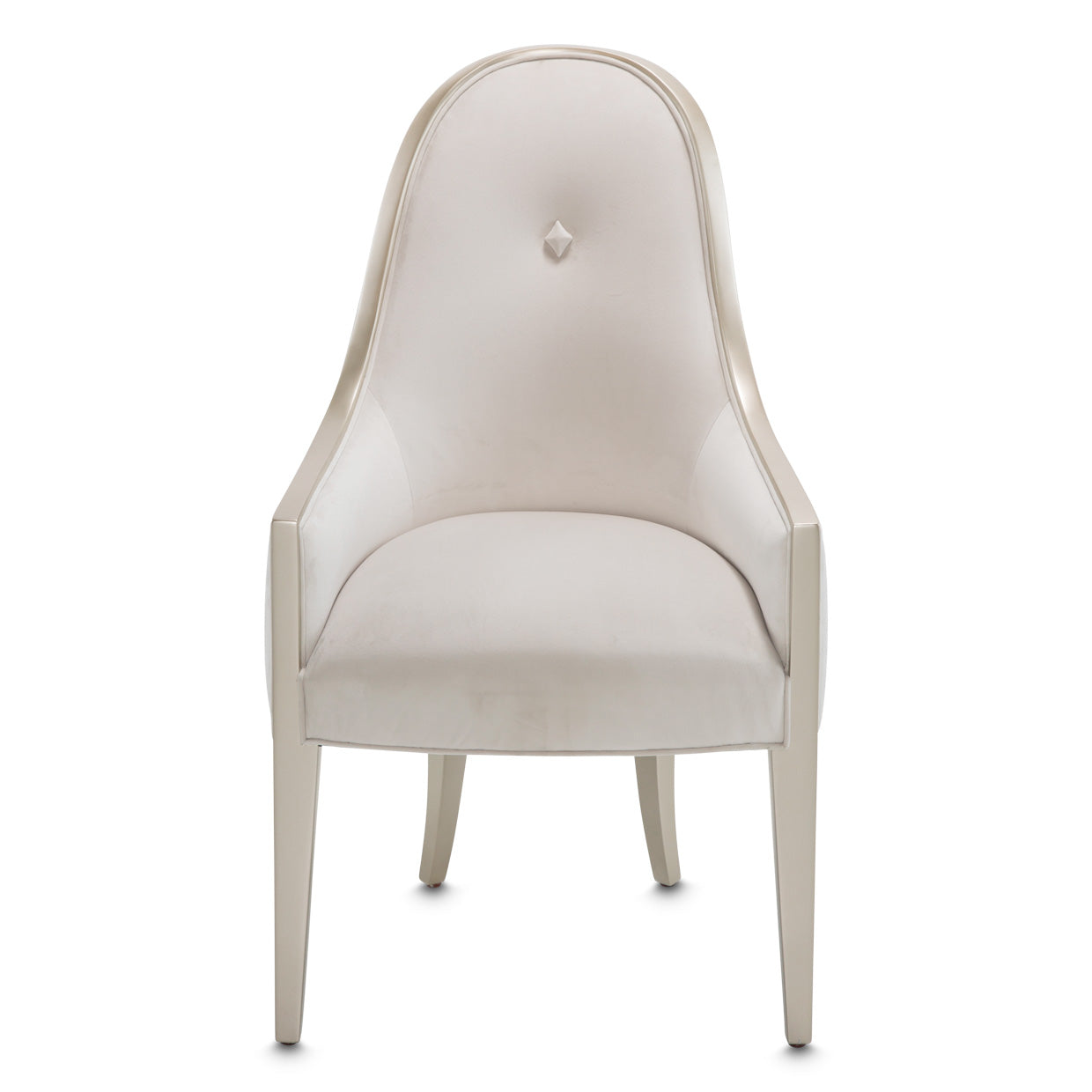 • Chair’s wood frame, armrests, and legs are finished in platinum