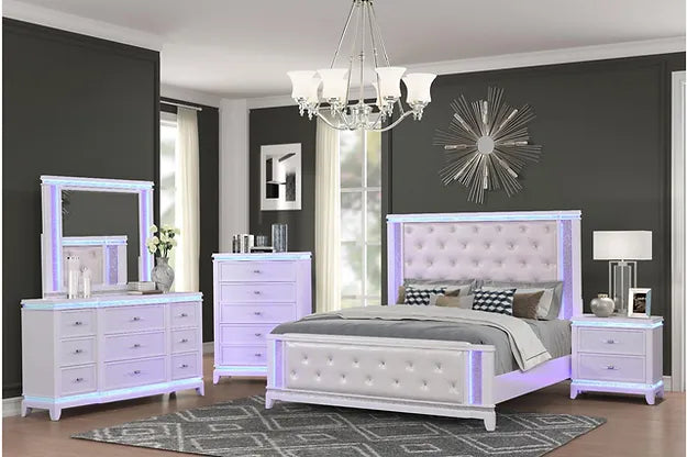 Opium Bedroom Set 5Pc Milky White With LED Lights